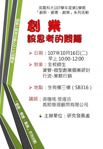活動時間:2018年10月16日 10:00 ~ 12:00 | 活動地點:生有樓三樓_SB316 |