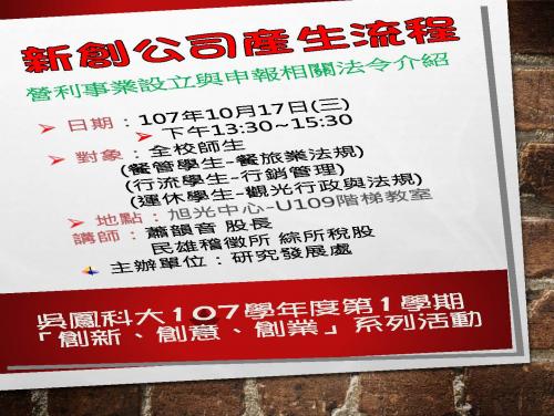 活動時間:2018年10月17日 13:30 ~ 16:00 | 活動地點:旭光中心_U109階梯教室 |