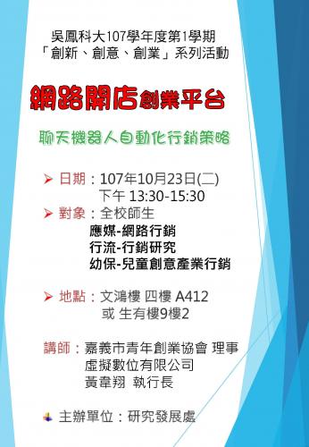 活動時間:2018年10月23日 13:30 ~ 16:00 | 活動地點:生有樓九樓2 |