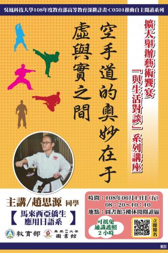 【圖書館】擴大藝術饗宴「與生活對談」系列講座:空手道的奥妙在于虚與實之間(108年度高教深耕計畫) | |