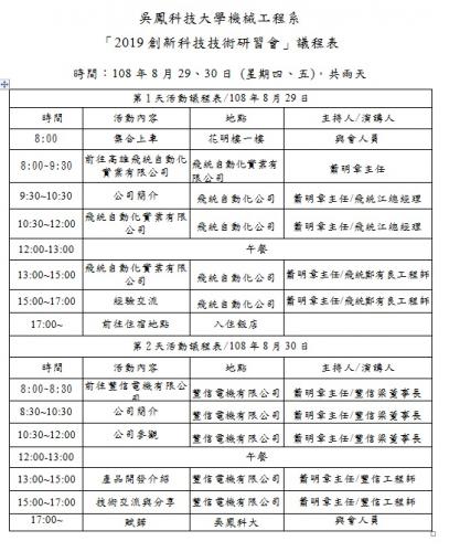 活動時間:2019年8月29日 08:00 ~ 8月30日 17:30 | 活動地點:飛統自動化實業有限公司(高雄市) 、豐信電機有限公司(台南市) |