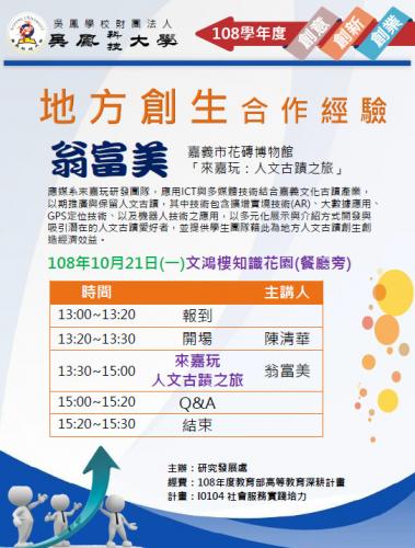 【三創課程】地方創生合作經驗(來嘉玩:人文古蹟之旅) | |