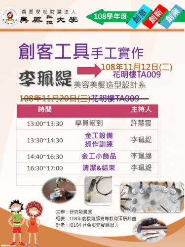 活動時間:2019年11月12日 13:00 ~ 17:30 | 活動地點:花明樓 TA009 |
