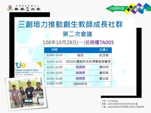 主 旨:108年度「三創培力推動創生」實務教學社群 第二次 會議