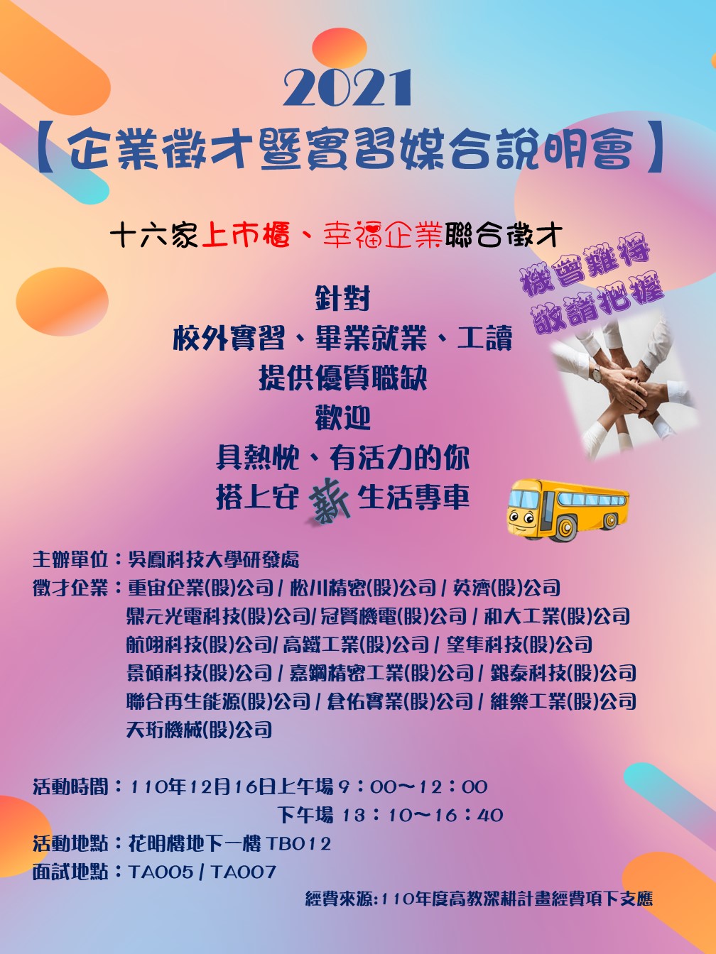 【研發處】2021企業徵才暨實習媒合說明會 | |