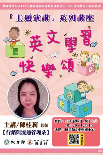 【圖書館】「我的圖書館」系列講座:英文學習快樂頌(111年度高教深耕計畫) | |