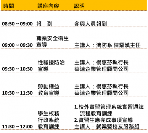 活動對象:(務必參加) 112學年度第2學期即將參與校外實習的學生